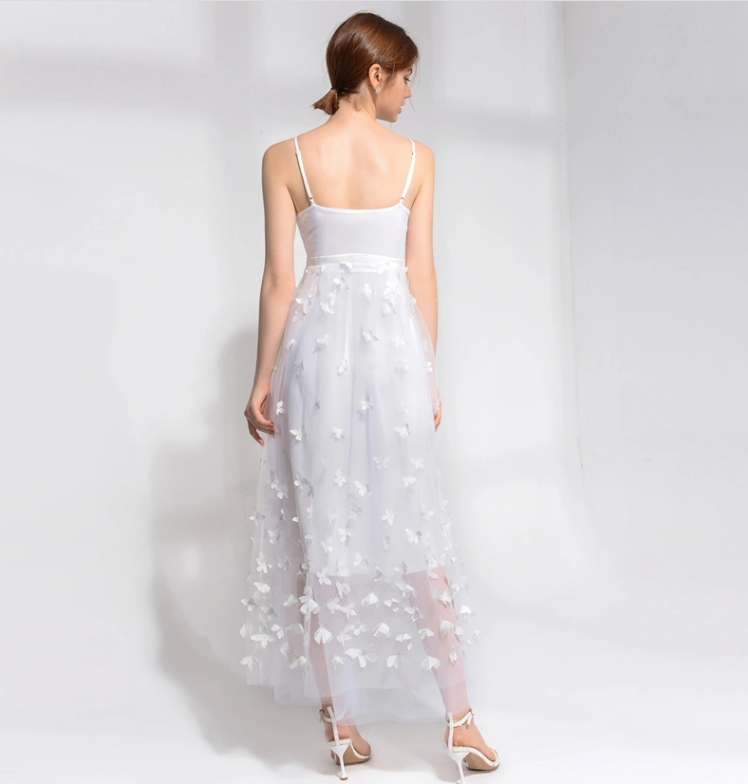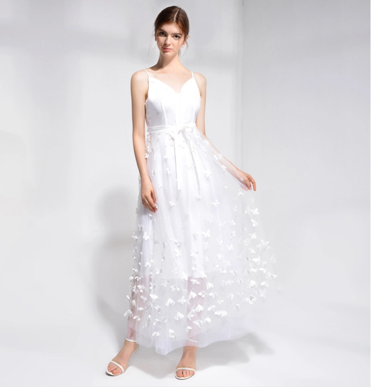 Elegant Women Party Adjustable Strap Embroidered Evening Long Dress Ladies Slim Wedding Dress