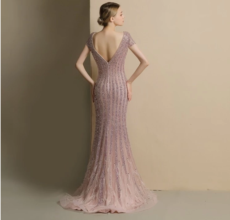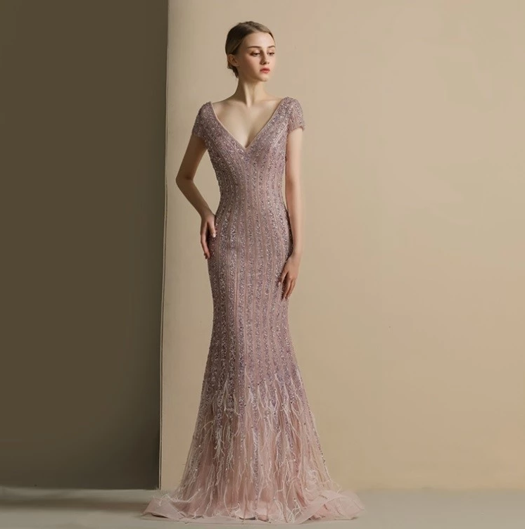 Sexy V-neck Mermaid Fashion Mermaid Beaded Lace Purple Evening Dress Evening Dress