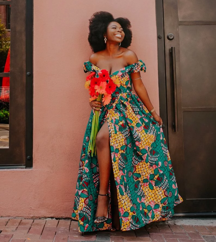 African Kitenge Dress Designs Off The Shoulder V-Neck Sexy Wax Print Plus Size Long Wedding Evening Dress
