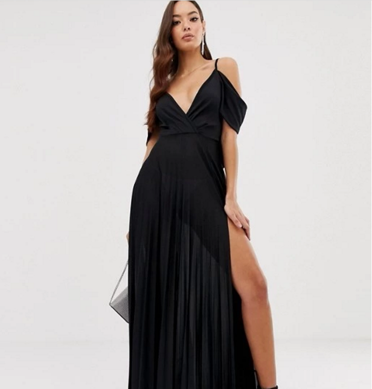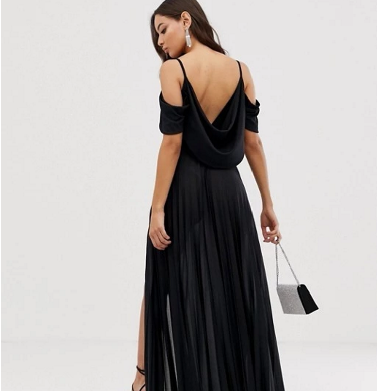 evening dress women Cold Shoulder Cowl Back Pleated Maxi women Dress