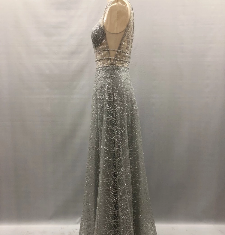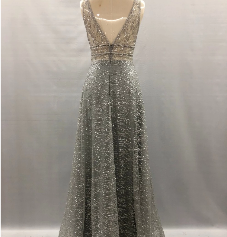Silver Paillette Fashion Party Dresses Brilliant Strap V-neck Long Evening Dresses