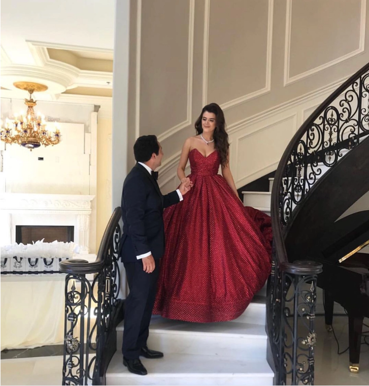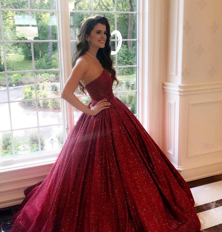 Latest Shimmering Red Evening Dress with Enticing V-Neck Strapless Prom Gowns 2019 robe soiree Lady Gala Party Ball Dress