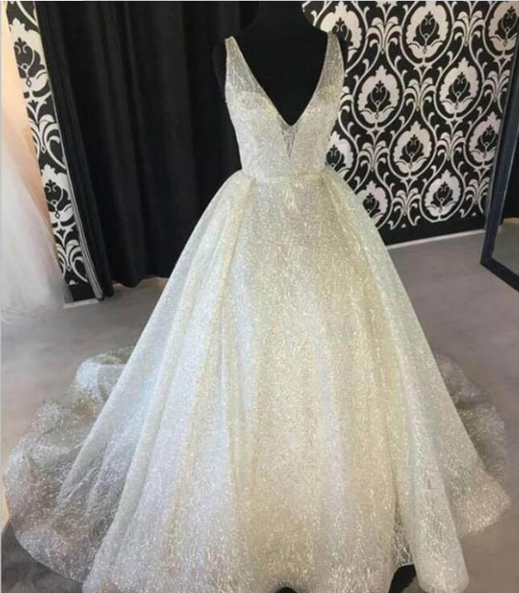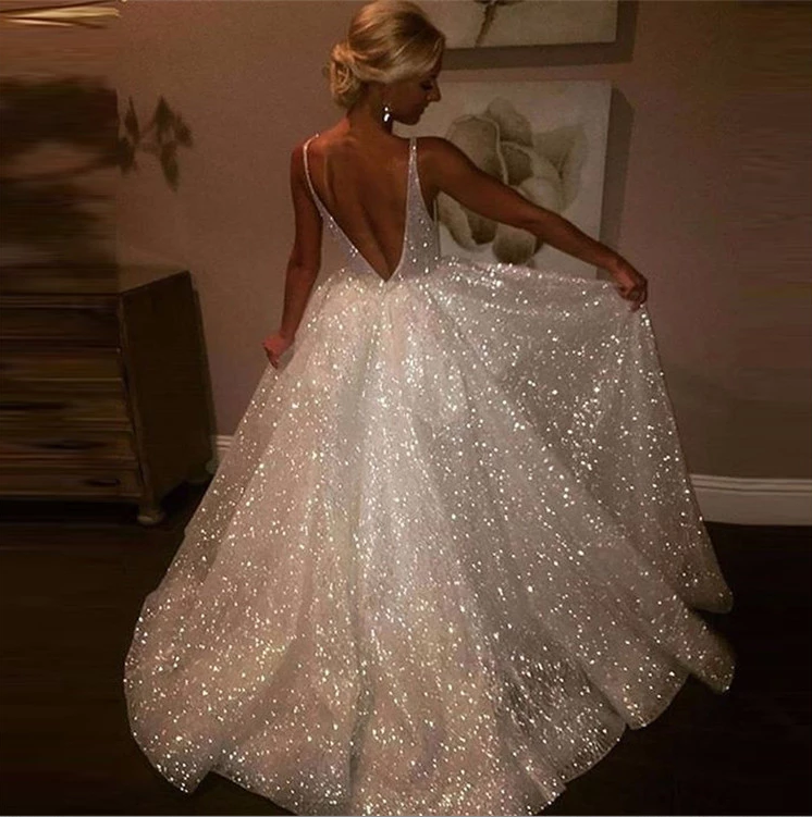 deep v-neck sexy party night sequins backless evening long wedding dress