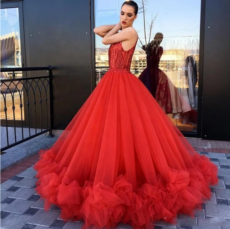 Stunning sequined puffy queen pleating formal evening party prom dress ball gown