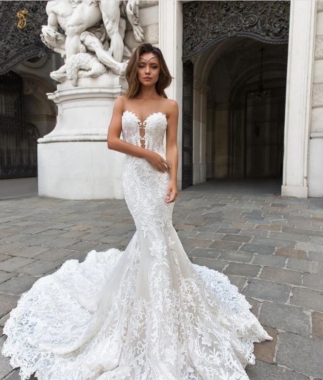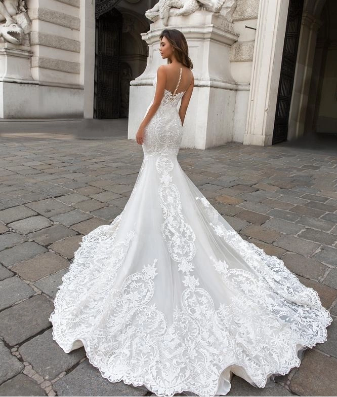 robe de mariage Luxury Mermaid Wedding Dresses Sexy Fit and Flare Lace Wedding Gown with Train Off Shoulder Arabic Bridal Dress