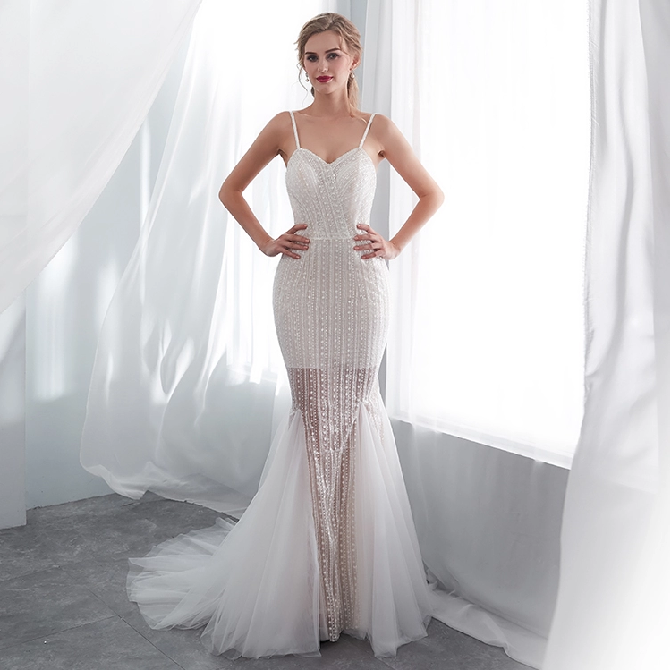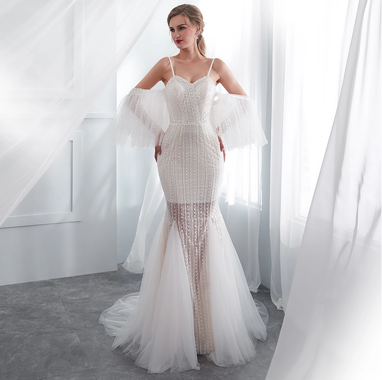 Long spaghetti straps bridal gown ivory lace boho wedding dress with detachable sleeves