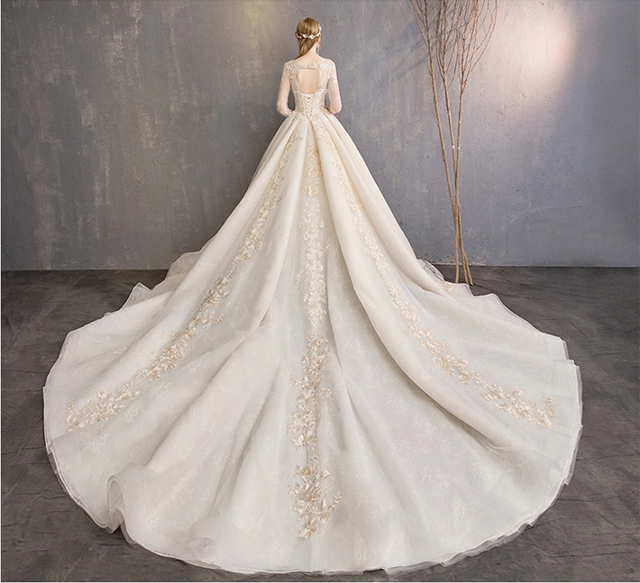 Long Sleeve Princess Style Floor Length Wedding Dress