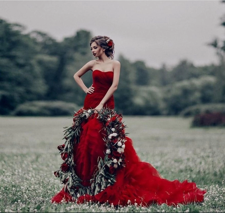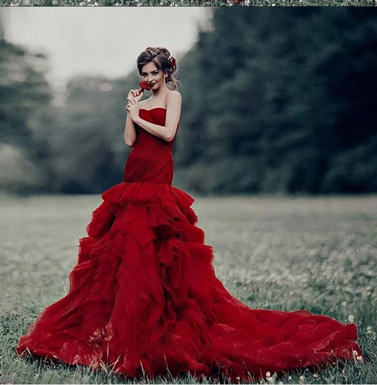 sweetheart ruffle tiered backless organza mermaid sexi prom dress red prom dress long