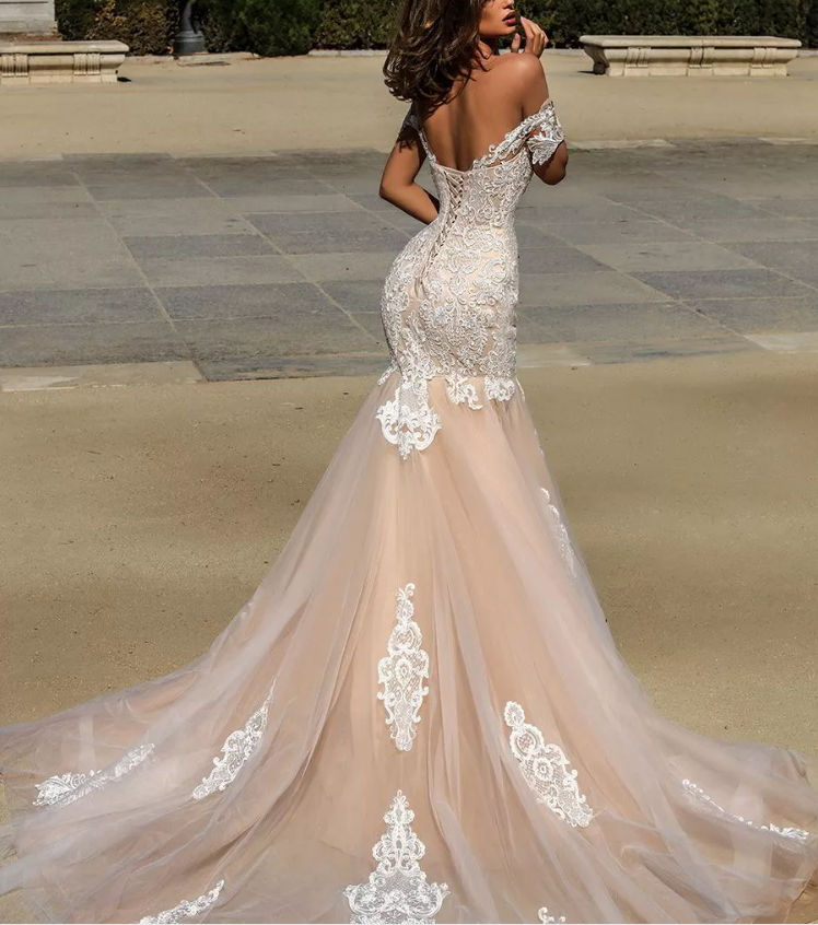 Sleeveless off shoulder trumpet lace tulle 2019 mermaid wedding dress bridal gown