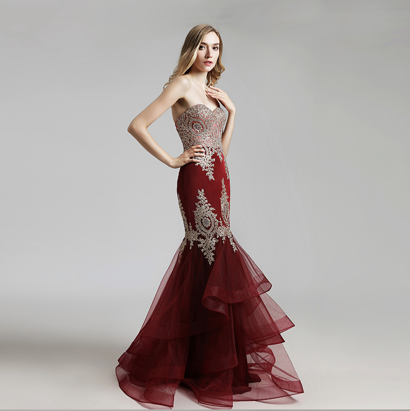 Elegant Long Mermaid Prom Dresses Embroidery Party Gowns Formal Robe