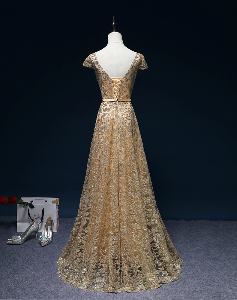 Elegant Gold Evening Dresses Navy Blue Sequined Vestido De Festa Longo Party Prom Formal Christmas Dress