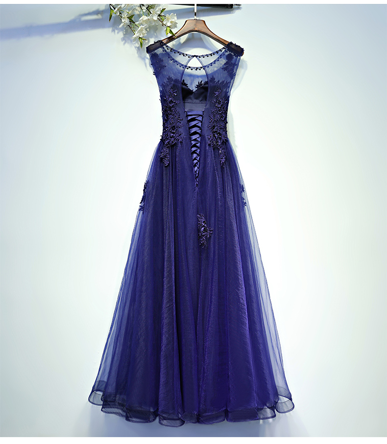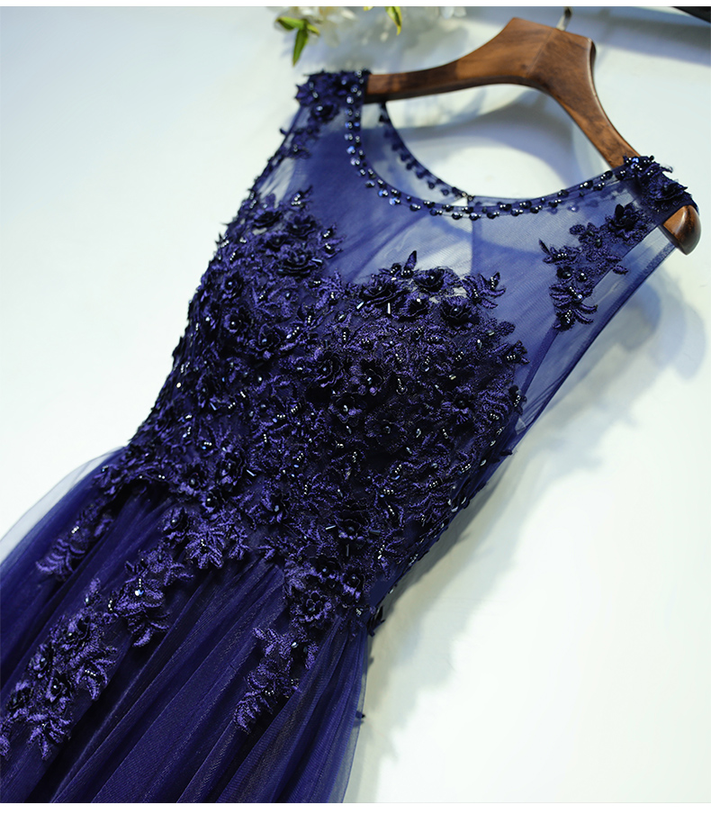 Navy Blue Evening Dresses vestido de gala largo Lace Applique Beaded Floral Tulle Prom Gowns robe longue soiree