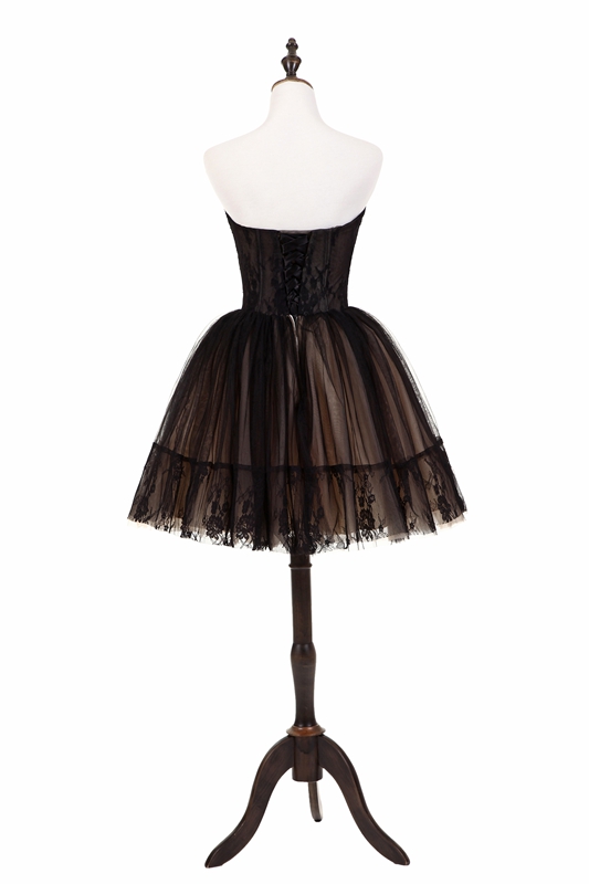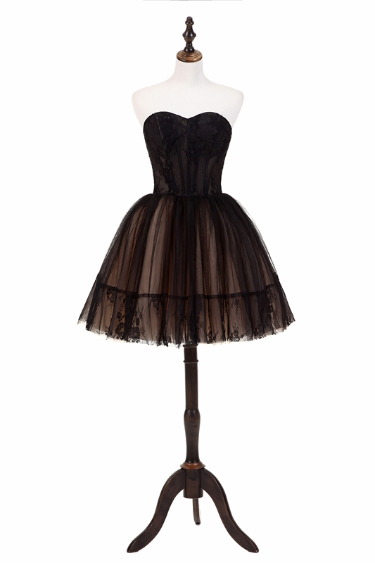 Black Prom Dresses Lace Vestido De Formatura Short Evening Gown Ball Gown Strapless Formal Formatura Graduation